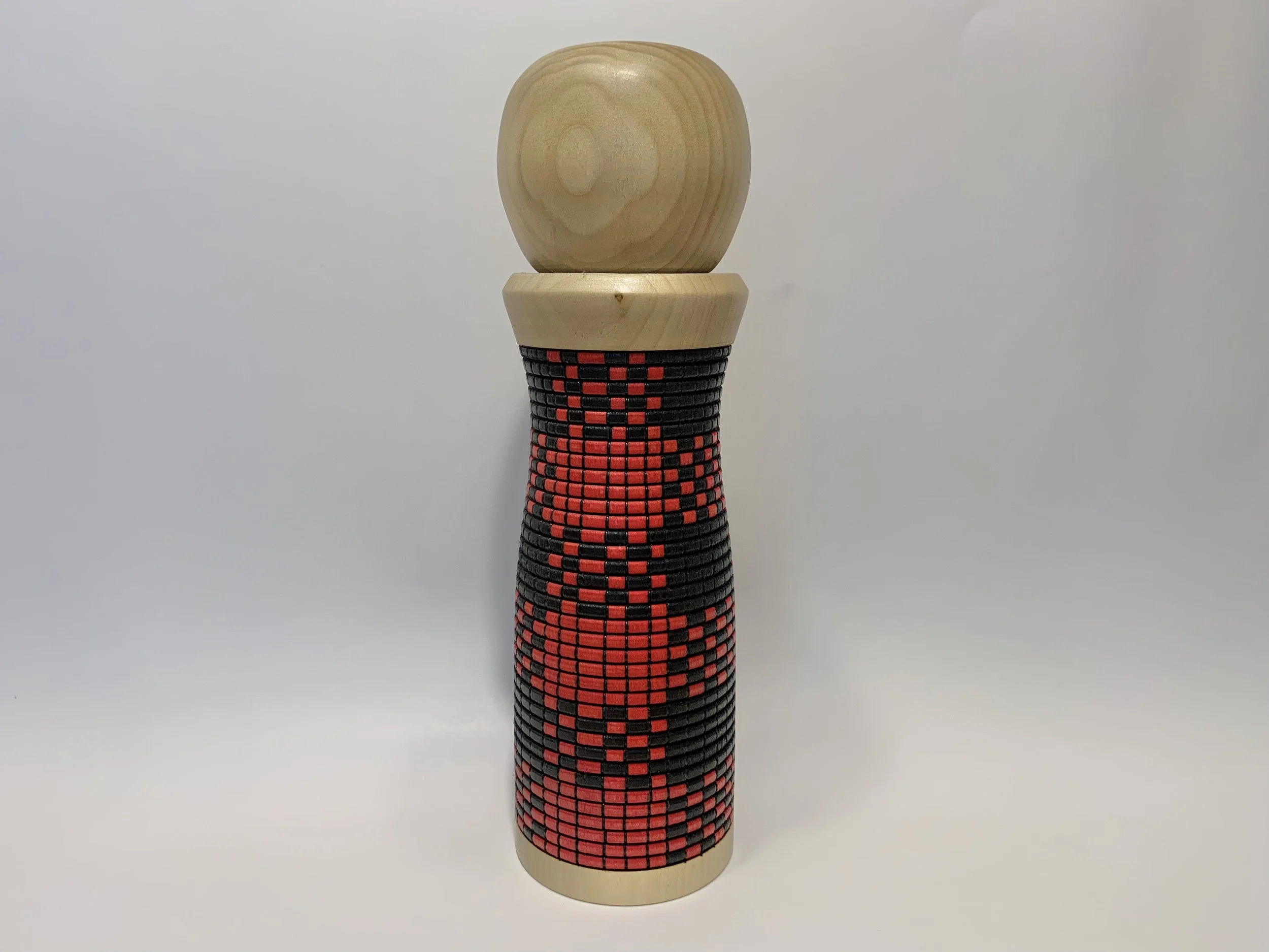 “Design, wood turning, burning, and color dying for each piece is done by hand. Automated machinery and production work is not our style”